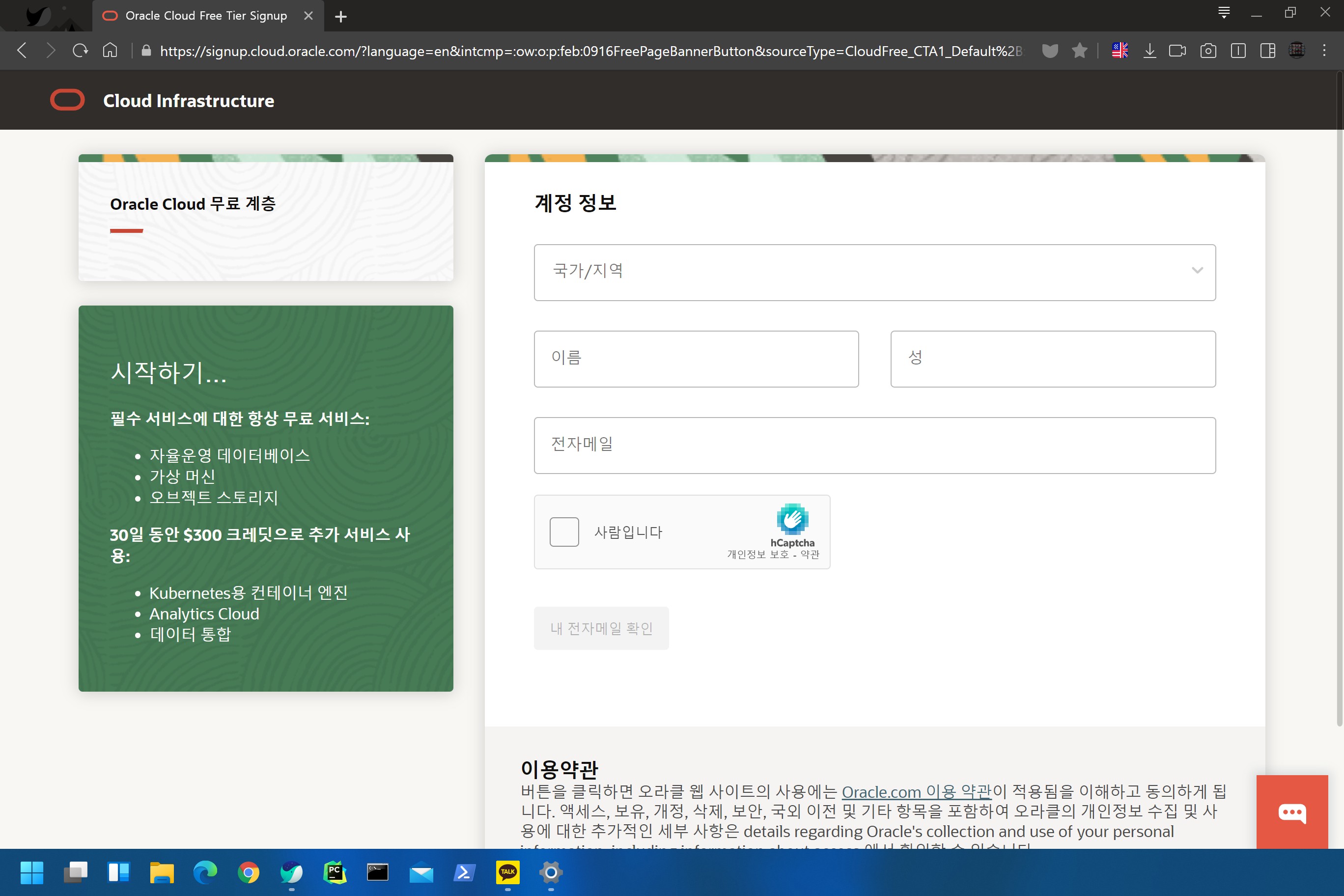 평생 무료이니만큼 계정을 여러개 만드는 것을 오라클에서 열심히 방해한다.