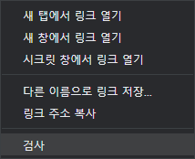 크롤링을 하려면 우선 대상 사이트의 구조를 파악해야 한다. 이를 위해 브라우저 빈 공간에서 마우스 우클릭을 하고 나타나는 팝업 메뉴에서 검사를 클릭한다.