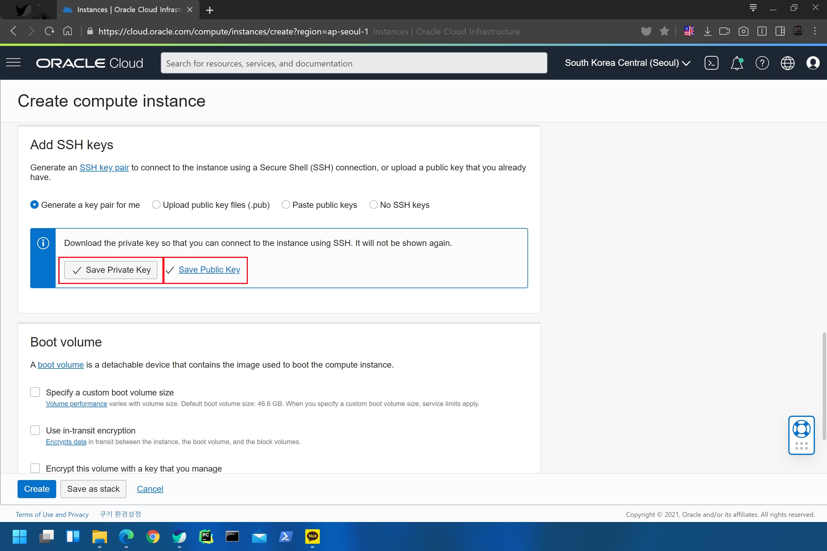 뒤에서 ssh 접속을 하기 위해 key 파일을 저장한다. 지금 하지 않으면 많이 귀찮아지니 지금 꼭 하자.