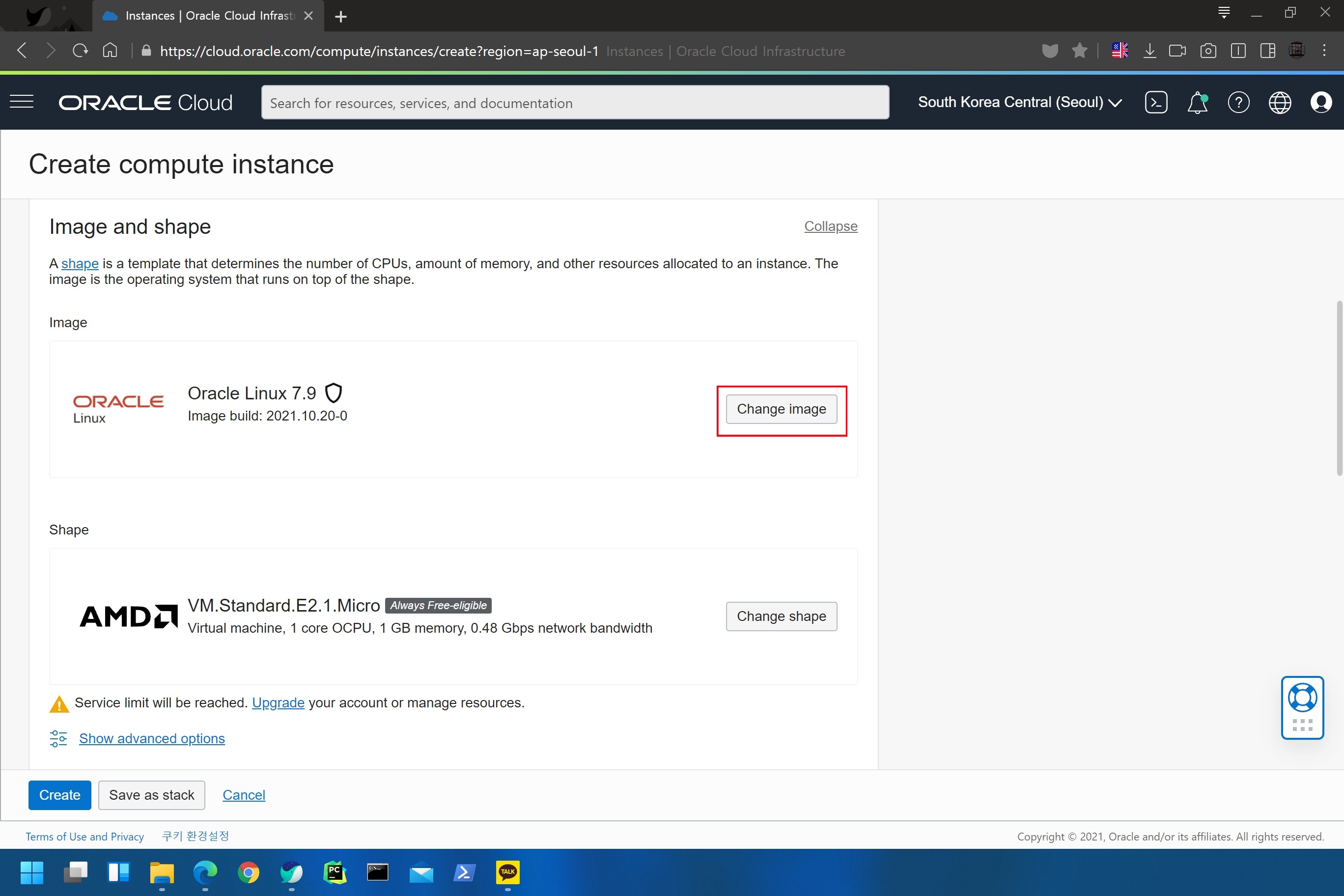 Image and shape 에서 Edit 버튼을 눌러 서버 OS를 선택하러 간다.