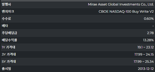 종목명에 NASDAQ 100 Covered Call이라고 딱 밝혀놨습니다. 나스닥 100 지수 옵션을 매도해서 초과수익을 만들어내는 ETF 입니다.