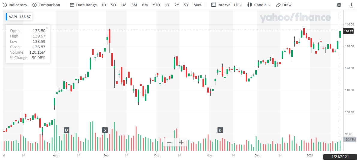 참고로 한국에서 상승/하락을 표시하는 색깔은 미국과 반대다. 한국에서는 빨강이 상승이지만, 미국에서는 하락을 의미한다. 미국주식을 볼 때는 이 점에 주의하도록 하자.