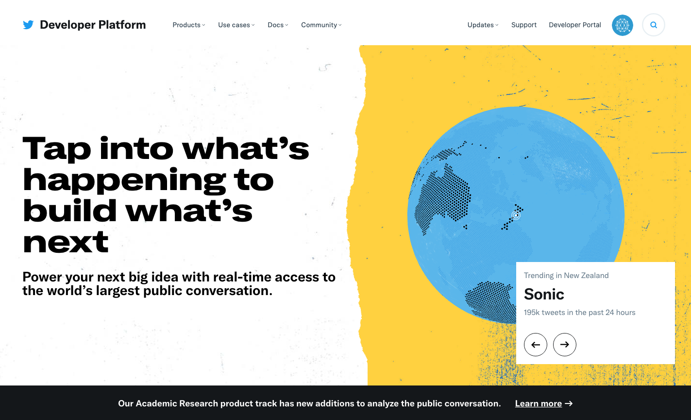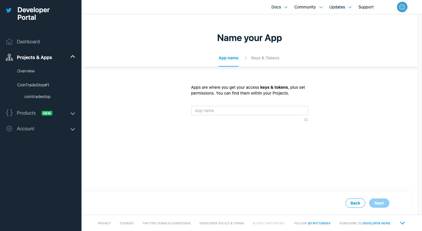 먼저 트위터 계정을 만든 후, 개발자 사이트 https://developer.twitter.com/ 로 이동해 로그인 한다.